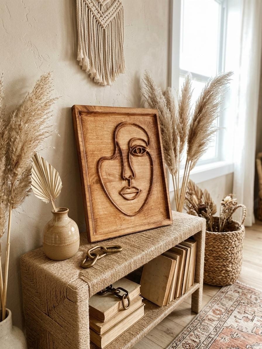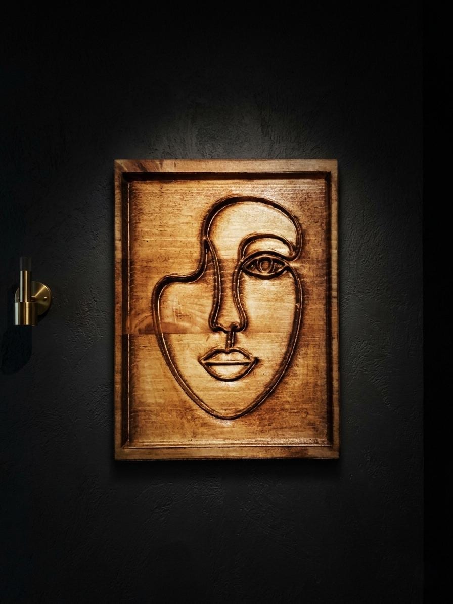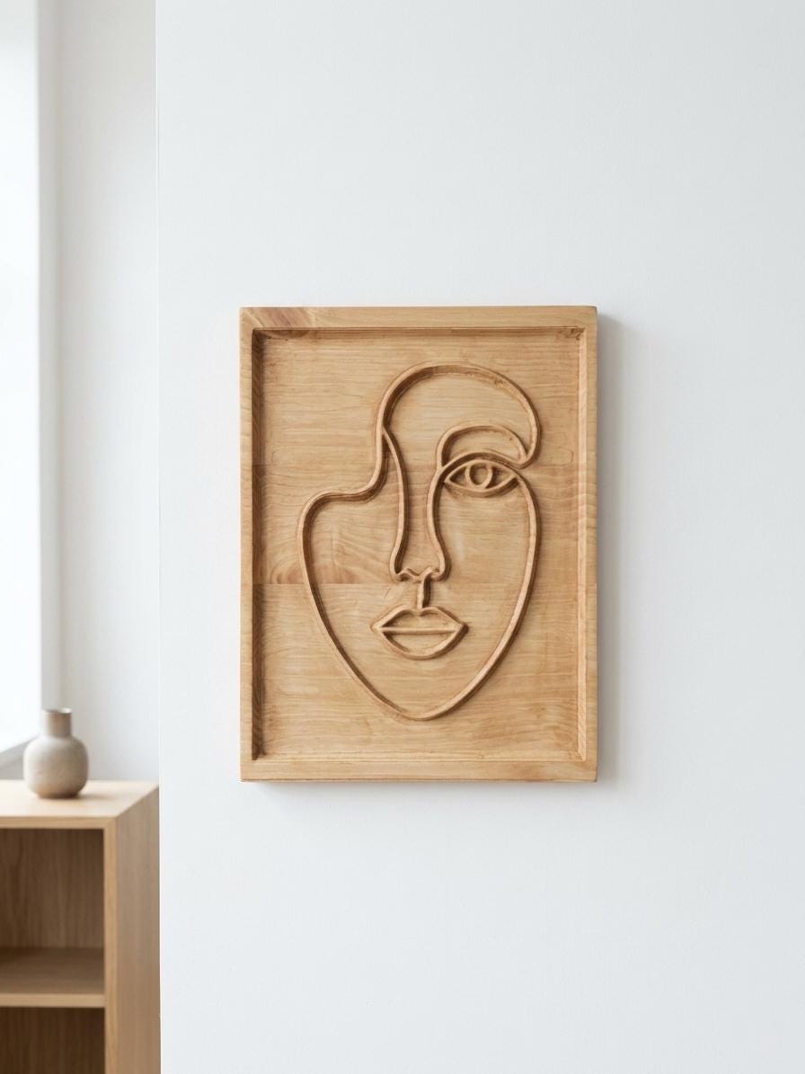 This unique carved panel captures the essence of human emotion using clean lines and an abstract design. A perfect blend of minimalism and natural texture, it creates a calm yet powerful visual statement.