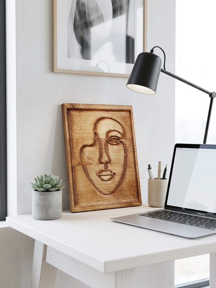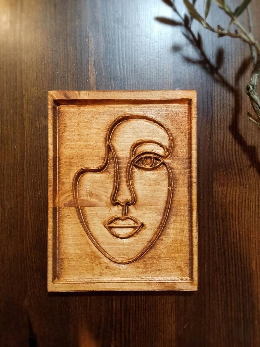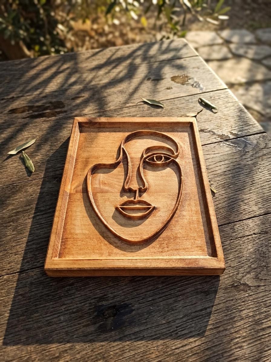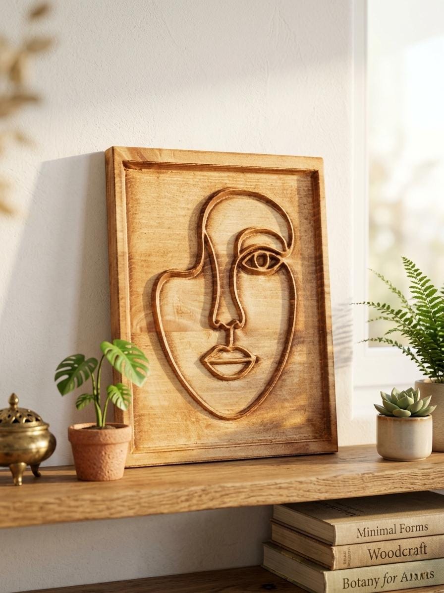 Bring modern simplicity and artistic expression into your space with this handcrafted minimal face wooden wall art.