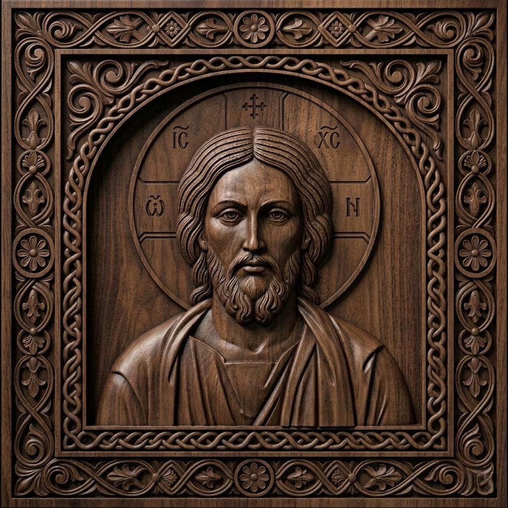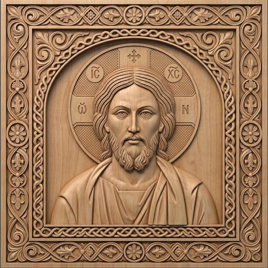 This high quality STL file features Jesus Christ Pantocrator, one of the most iconic and spiritually powerful representations in Orthodox Christian art. Designed with precision and symmetry, this 3D relief model captures the sacred expression and authority of Christ, making it ideal for CNC carving or 3D printing.