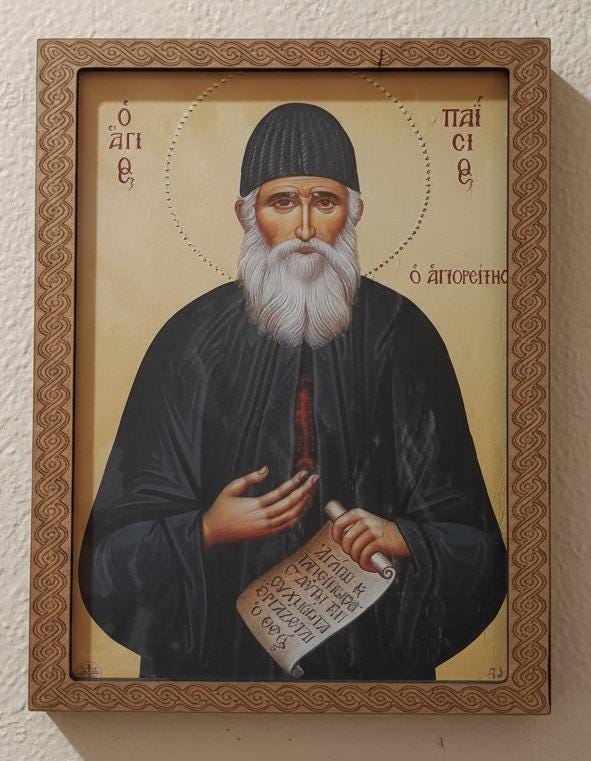 Icon of Saint Paisios, crafted with love and attention to detail. The icon measures 21 x 27 cm, with a durable MDF frame and high-quality vinyl printing, applied with a heat press onto plywood. A special piece that combines traditional iconography with modern technology, ideal for the home, office or as a gift with spiritual value.