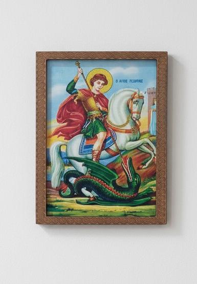 This handmade icon of Saint George is crafted on plywood with a high-quality vinyl print applied through heat press for long-lasting vivid colors. The frame is made from laser-cut MDF with a unique pattern, giving an elegant finish. Dimensions: 21 x 27 cm. Perfect as a spiritual gift, home décor, or to honor Saint George’s Day. A meaningful piece that combines tradition and craftsmanship from Greece.