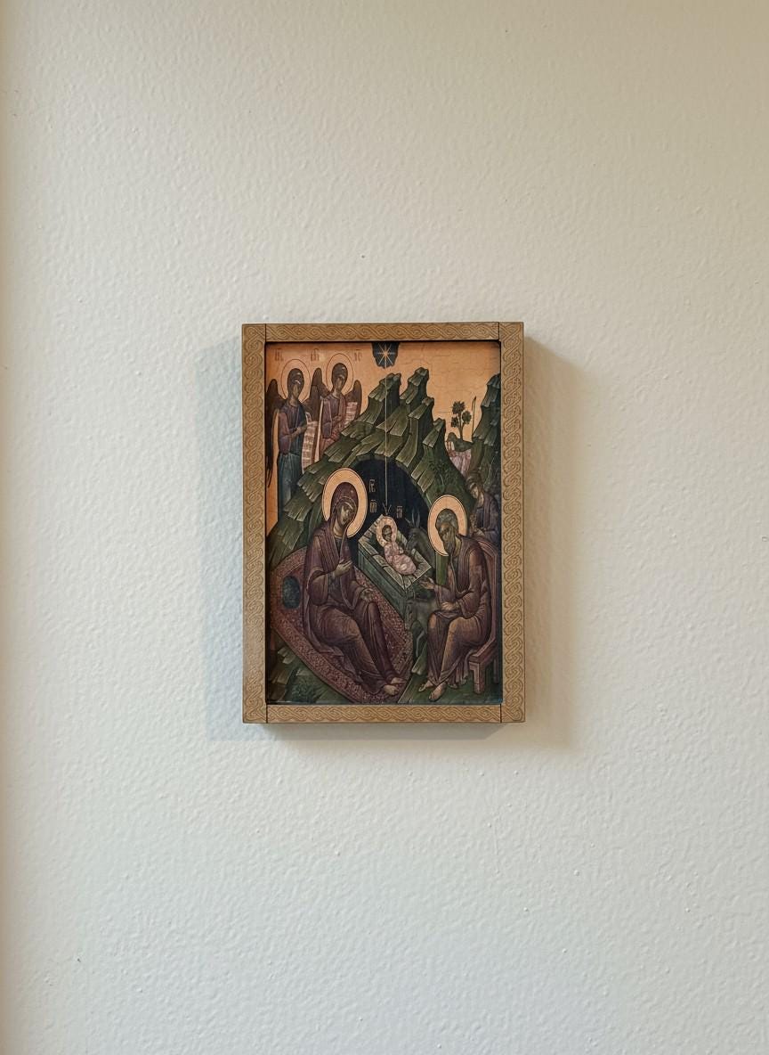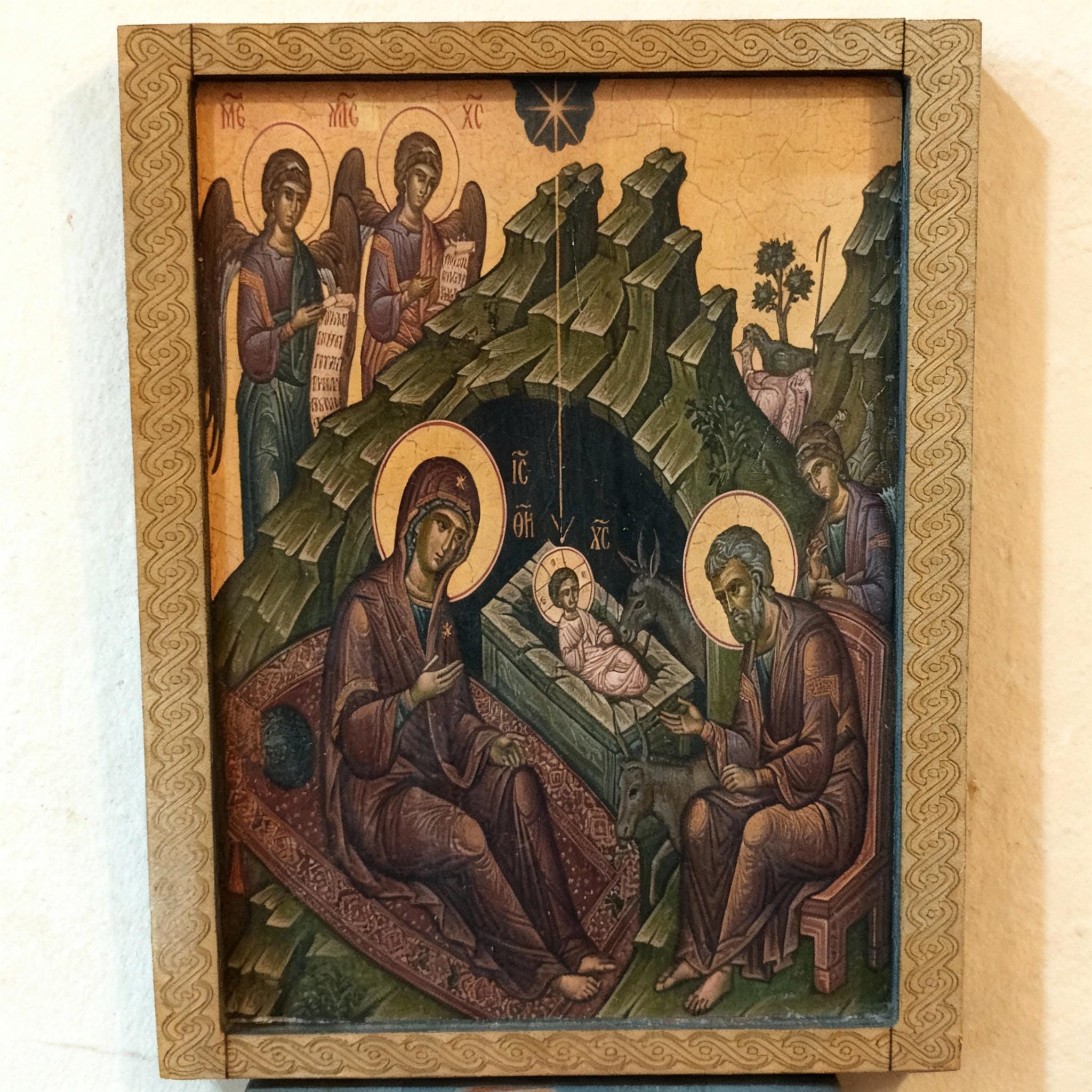 Nativity of Christ Wooden Icon.Handmade Christmas Gift.