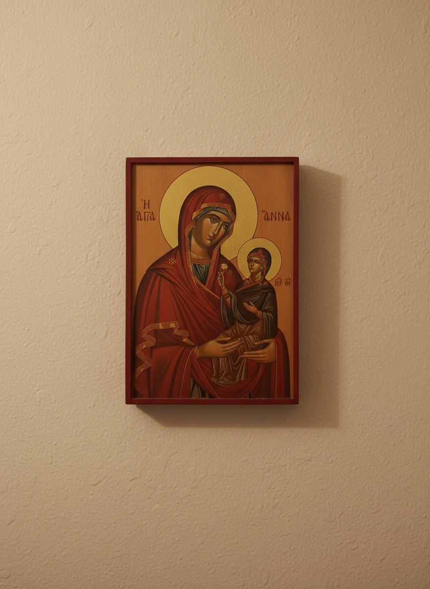 A beautiful depiction of Saint Anna holding the Virgin Mary as a child.