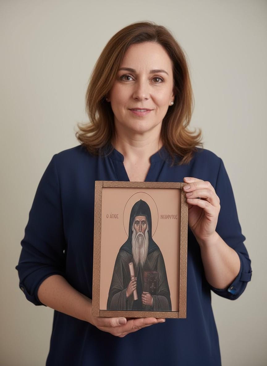 This beautiful icon of Saint Neophytos is handmade from high,quality plywood with heat transfer image printing for vivid colors and lasting beauty. Each piece is carefully crafted to honor Orthodox tradition, making it perfect for prayer corners, church décor, or as a meaningful spiritual gift.