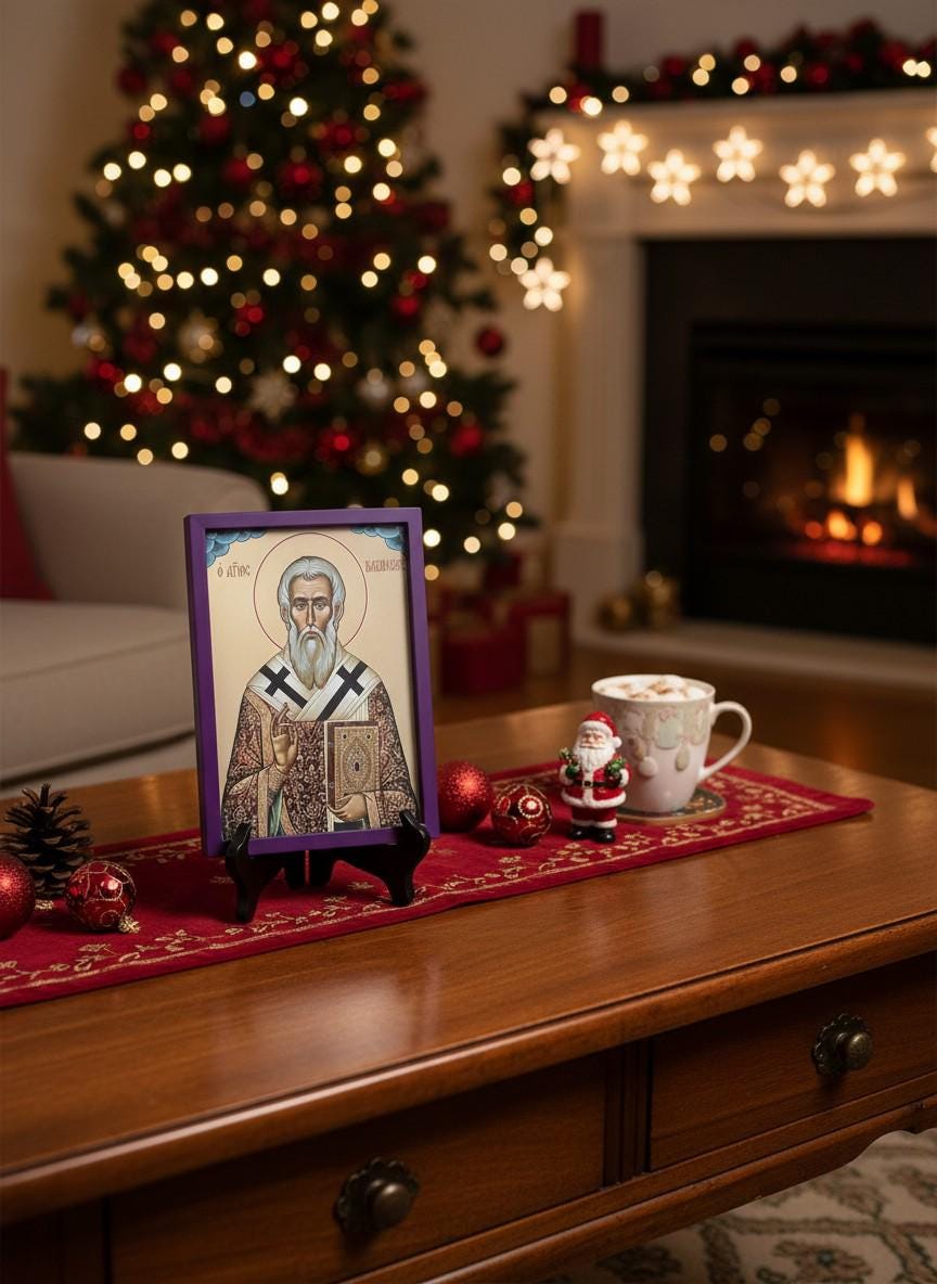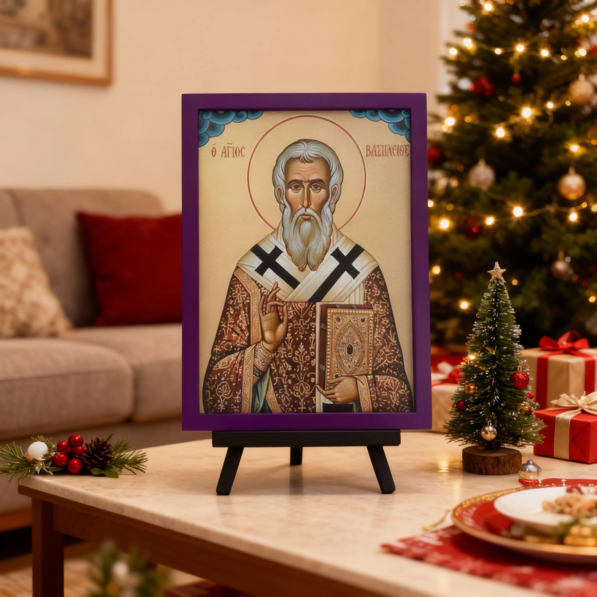 Saint Basil is known as one of the Three Hierarchs, patron of the poor, writers and teachers, and his icon is a deeply spiritual gift for any occasion: baptism, wedding, birthday, name day or housewarming. Ideal for the iconostasis or as Byzantine home decoration.