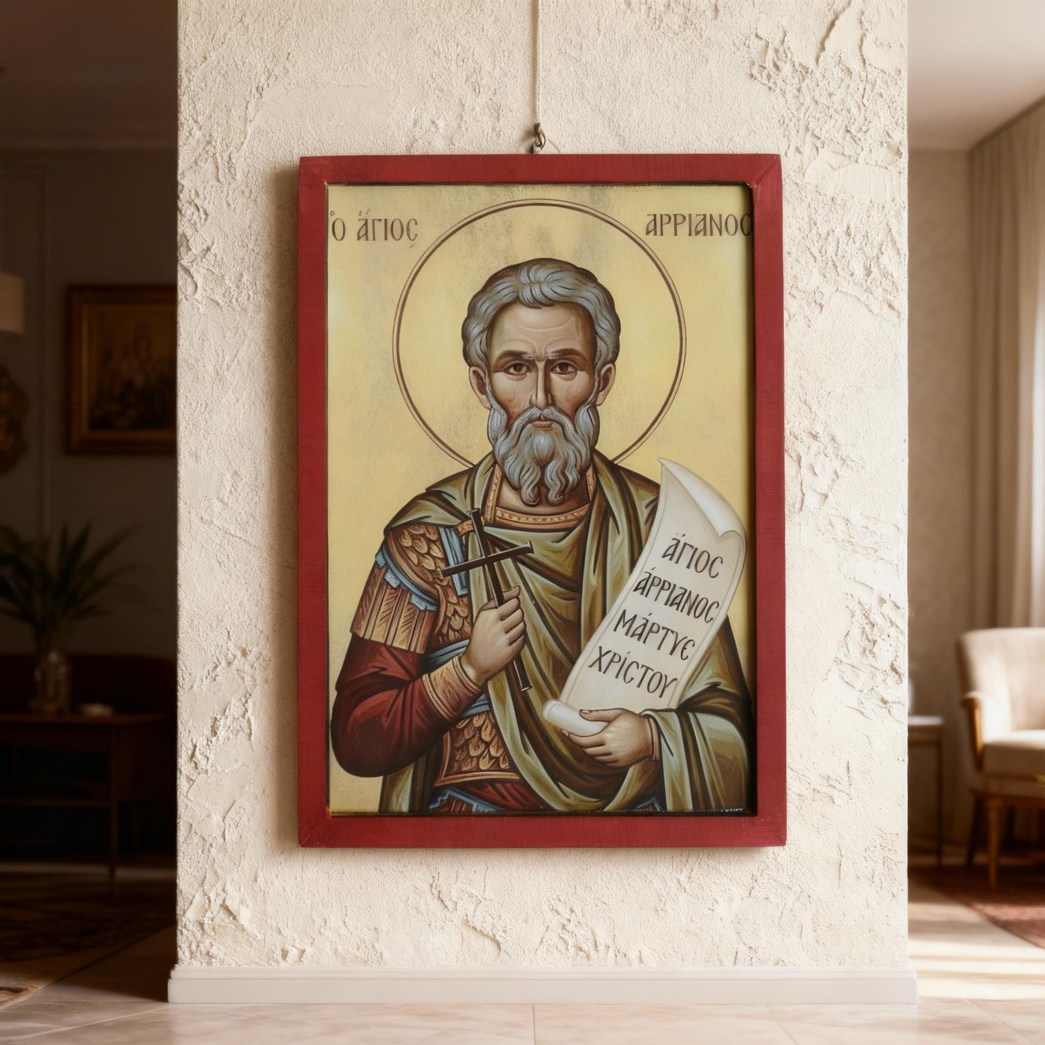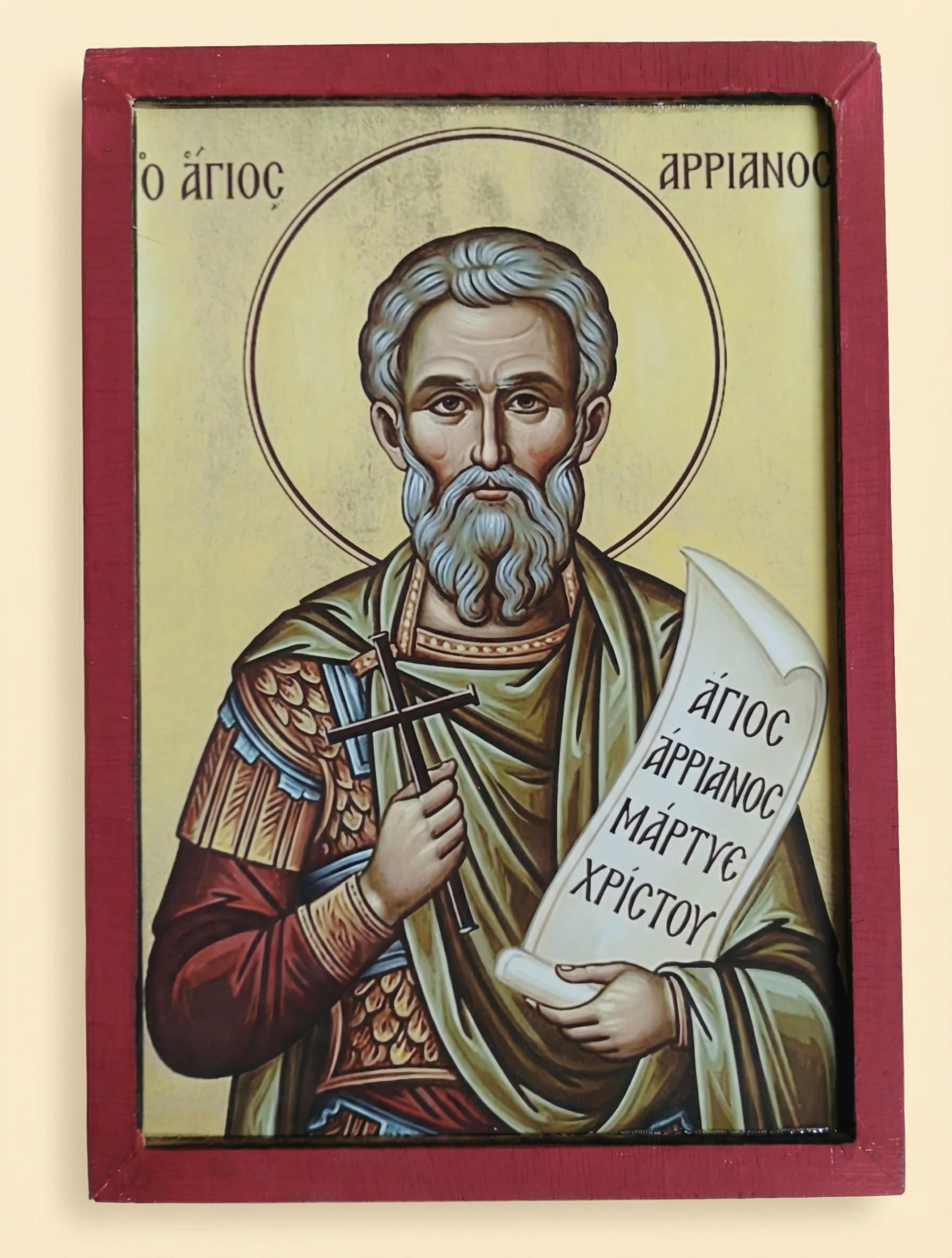 About Saint Arrianos: Saint Arrianos was the Eparch (Governor) of Thebaid in Egypt during the 2nd or 3rd century AD. Initially, he was a fierce persecutor of Christians. However, after witnessing miraculous events and the unwavering faith of the martyrs, he converted to Christianity. He publicly confessed his faith and suffered martyrdom for Christ, which is why he is honored as a Holy Martyr of Christ. His story is a powerful message of repentance and courage in one's faith.