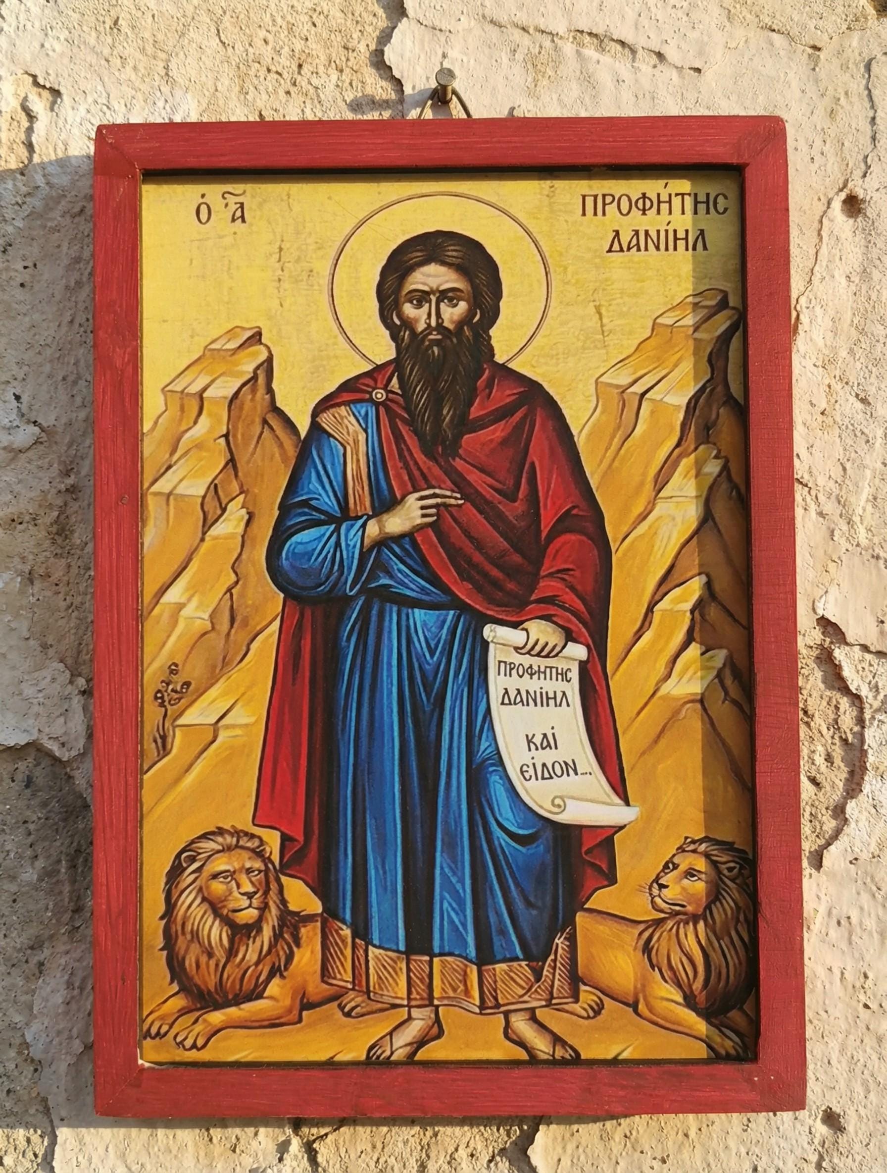 Who was Prophet Daniel? Prophet Daniel is a central biblical figure, renowned for his wisdom, faith, and ability to interpret dreams and visions. He is particularly recognizable from his story in the Lions' Den, where his faith protected him from all harm (hence the lions depicted in the icon). His icon symbolizes courage, protection, and the strength of the soul against trials.