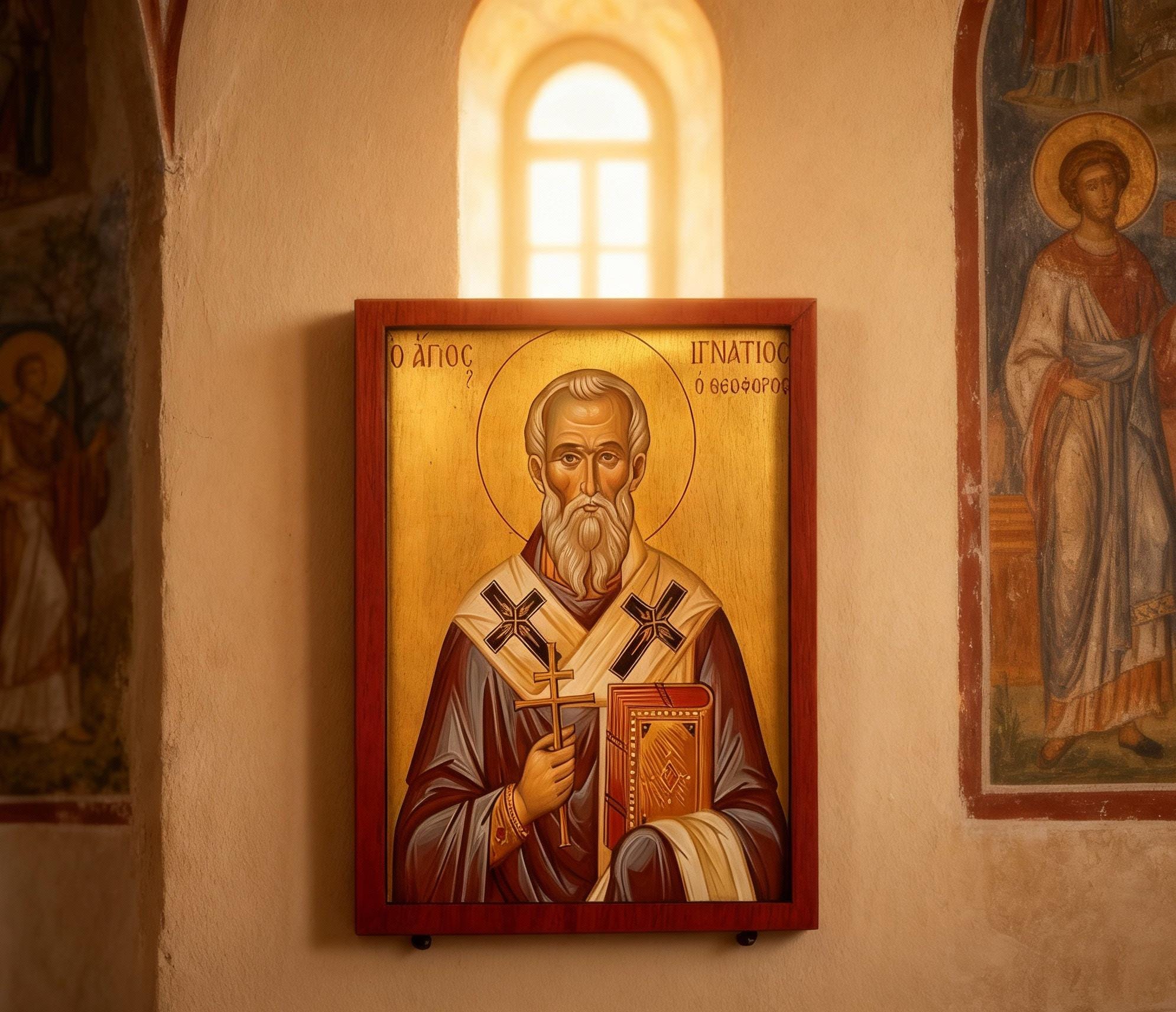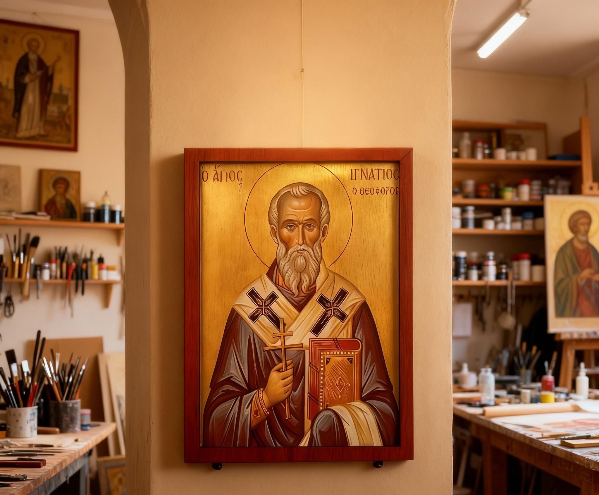 Saint Ignatius, a disciple of the Apostle John and Bishop of Antioch, is known for his deep spiritual writings, his unwavering faith, and his martyrdom in Rome. This icon is a meaningful reminder of strength, devotion, and divine inspiration.