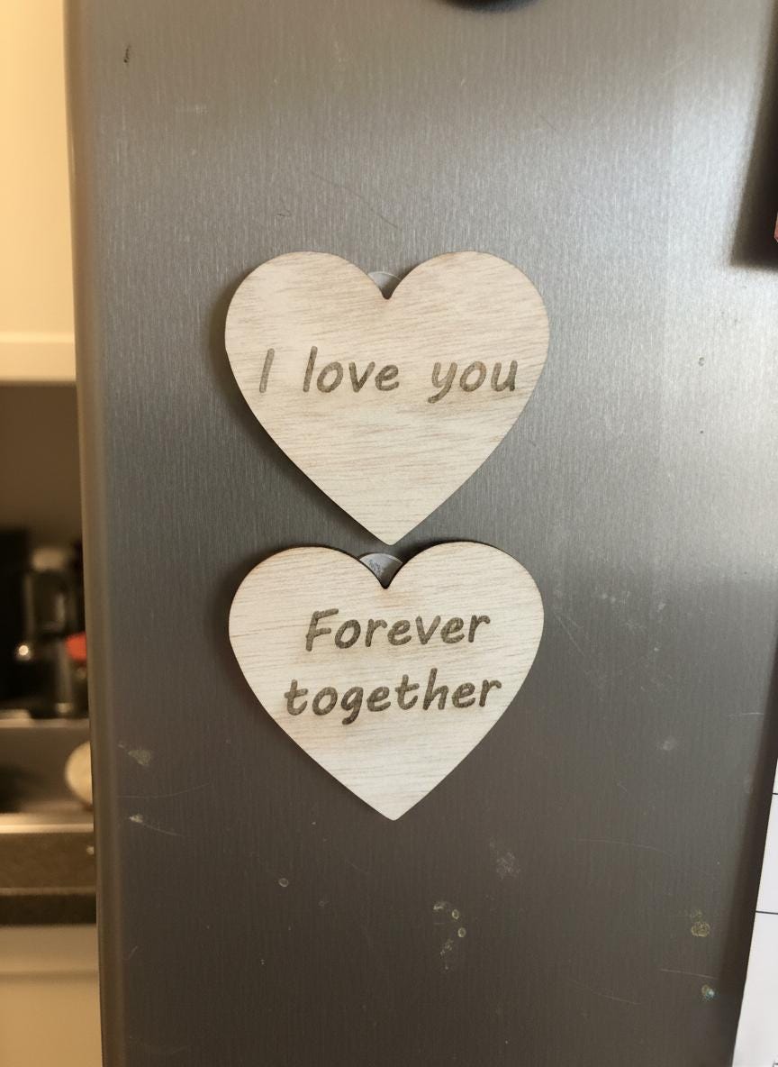 Custom Engraved Wooden Heart Magnet Set.Your Personalized Message of Love, Laser Perfect!