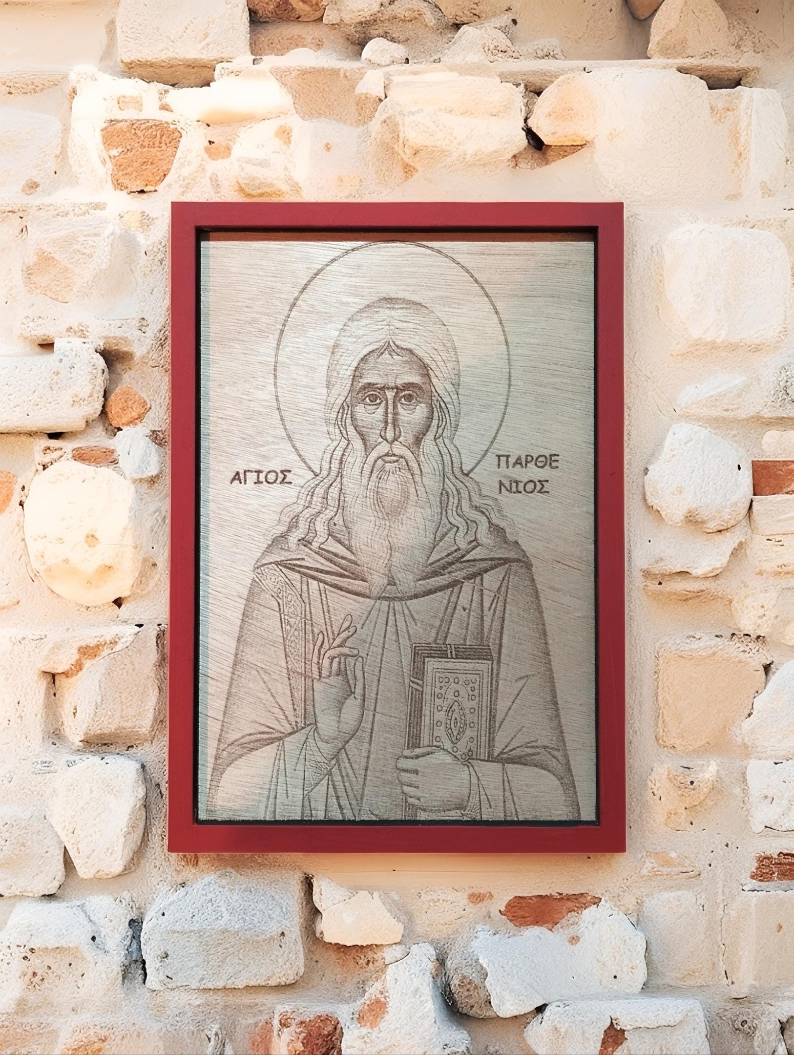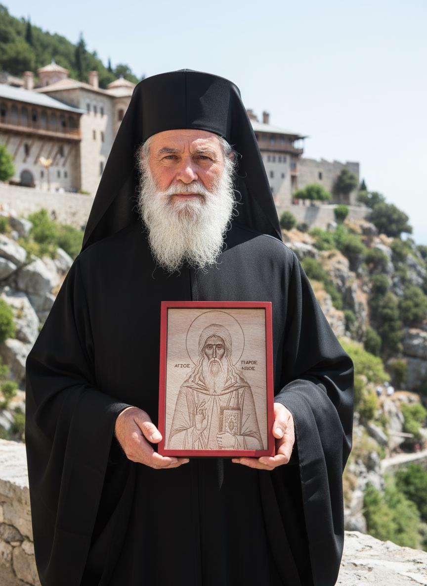 Discover a unique depiction of Saint Parthenios, Bishop of Lampsacus, meticulously crafted using laser pyrography on premium wood. Saint Parthenios is widely revered as the patron saint of cancer patients and a miraculous healer who dedicated his life to curing the sick through his unwavering faith.
