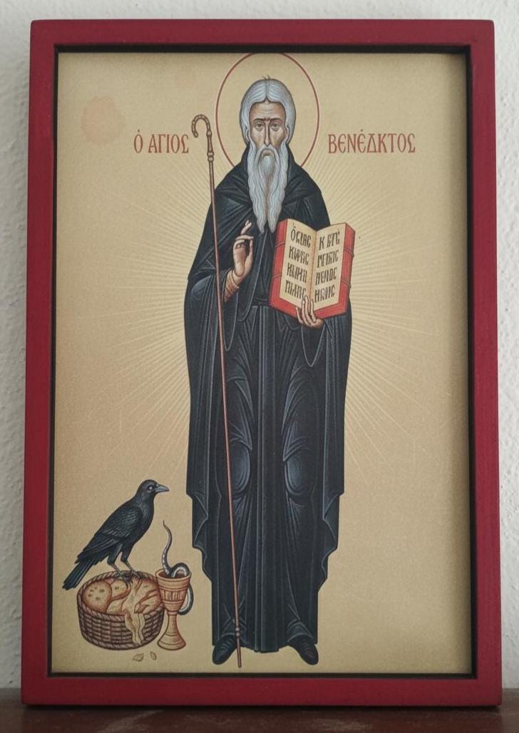 Handmade Saint Benedict Wooden Icon.A Symbol of Protection and Faith