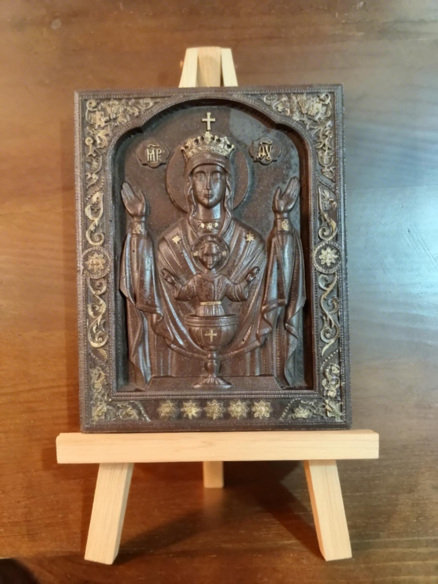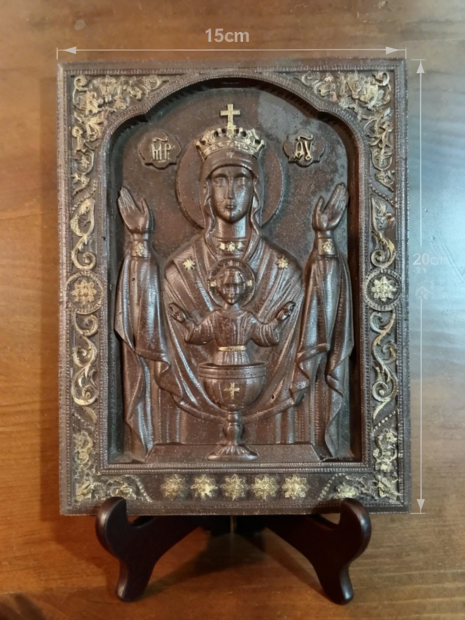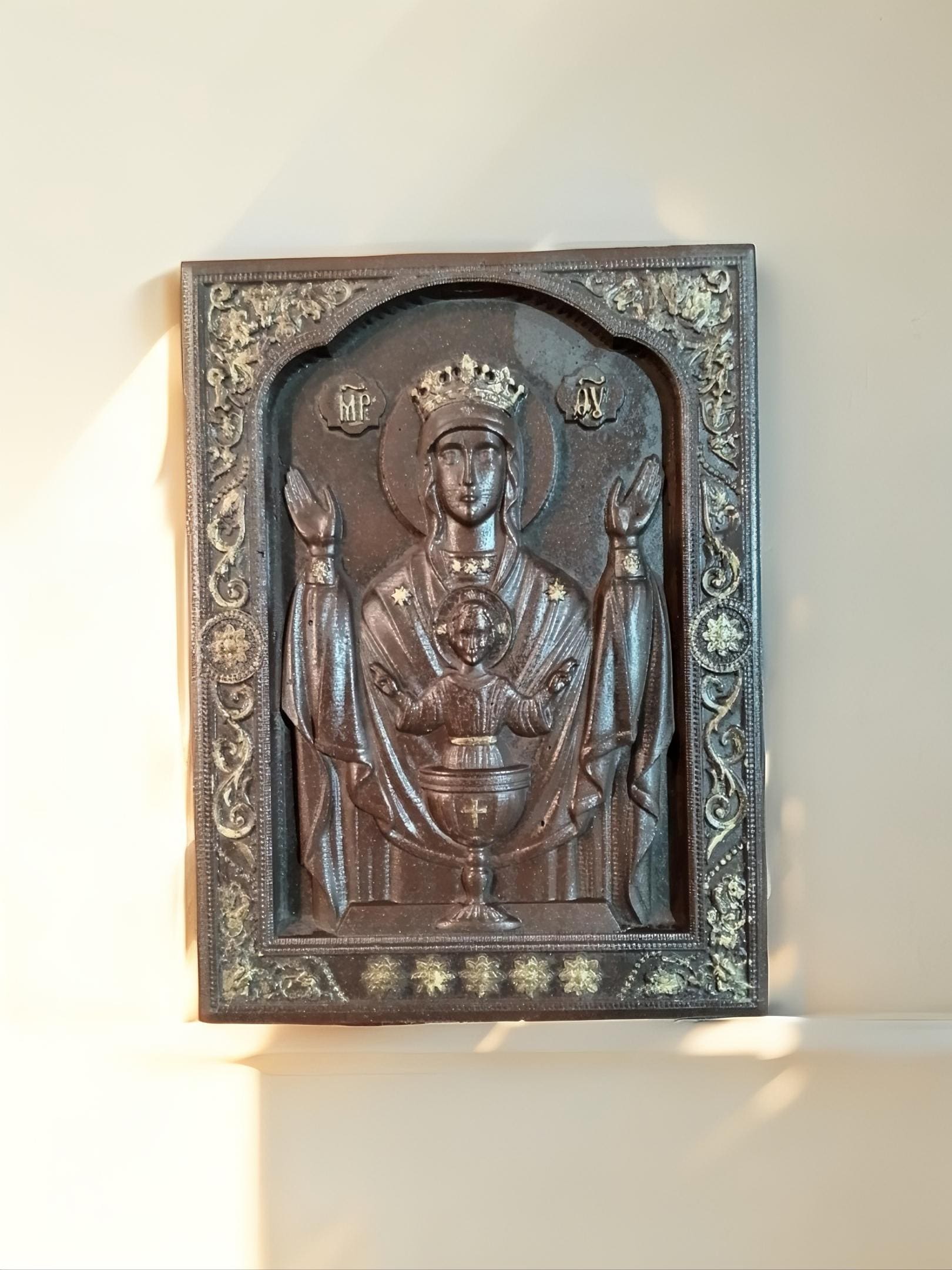 Handmade Orthodox Virgin Mary Relief Icon .Timeless Spiritual Art