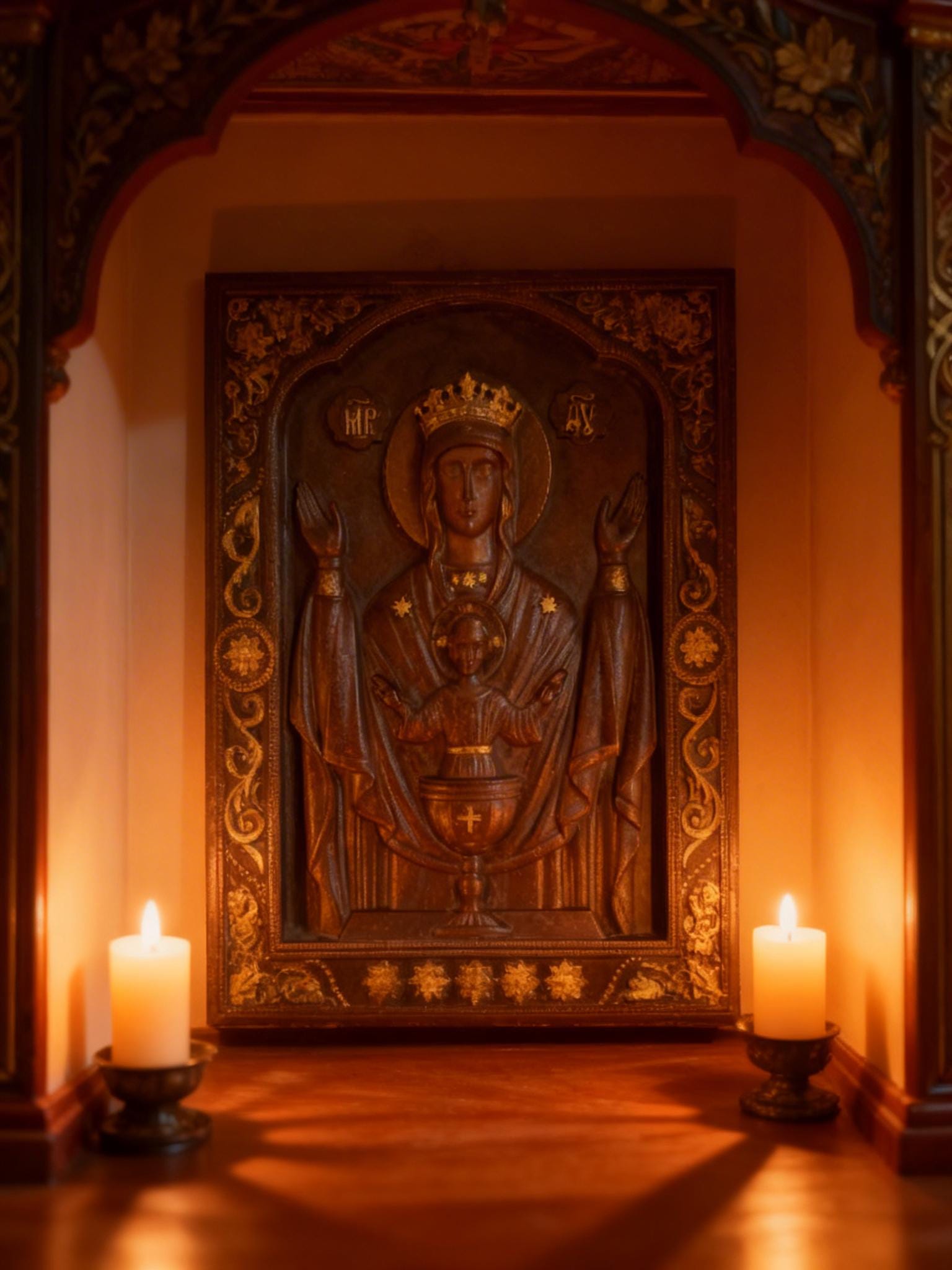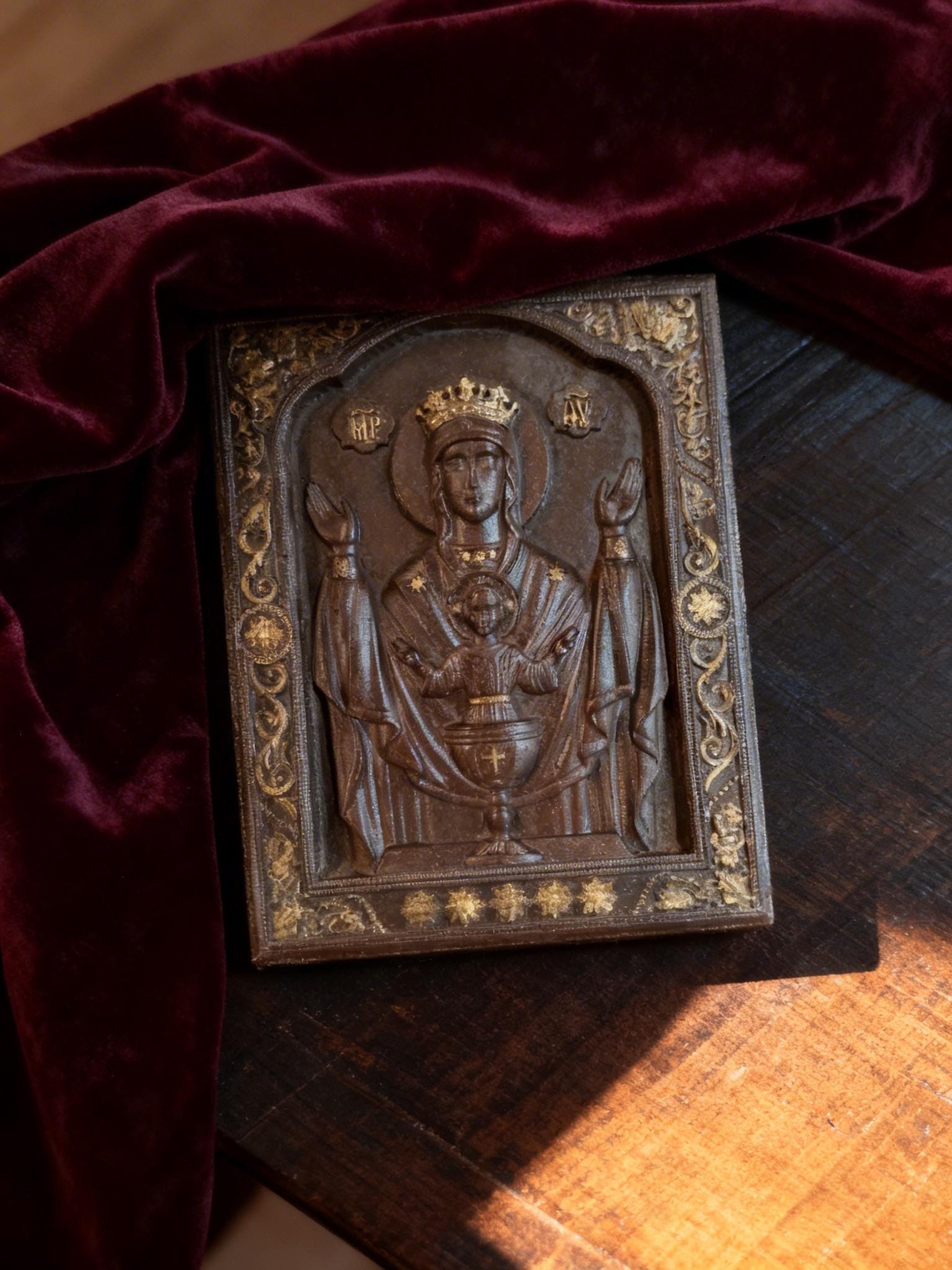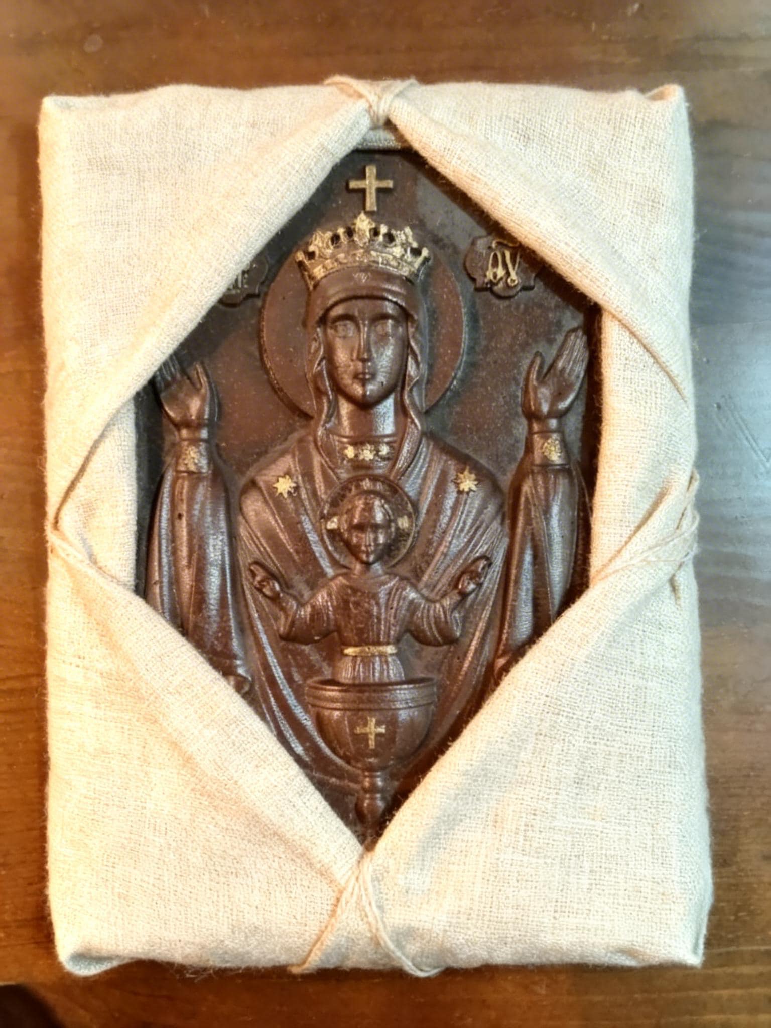 Handmade Orthodox Virgin Mary Relief Icon .Timeless Spiritual Art