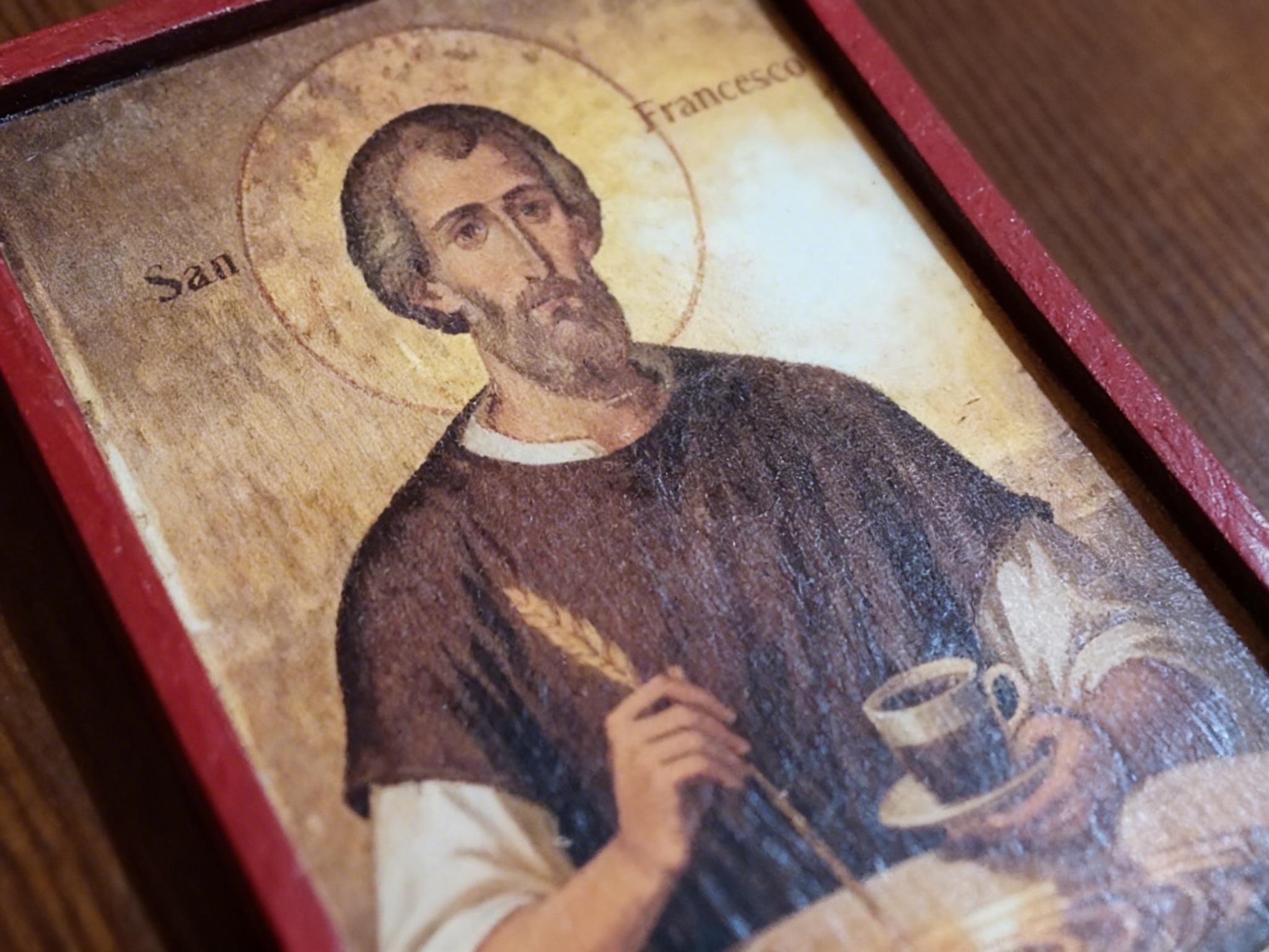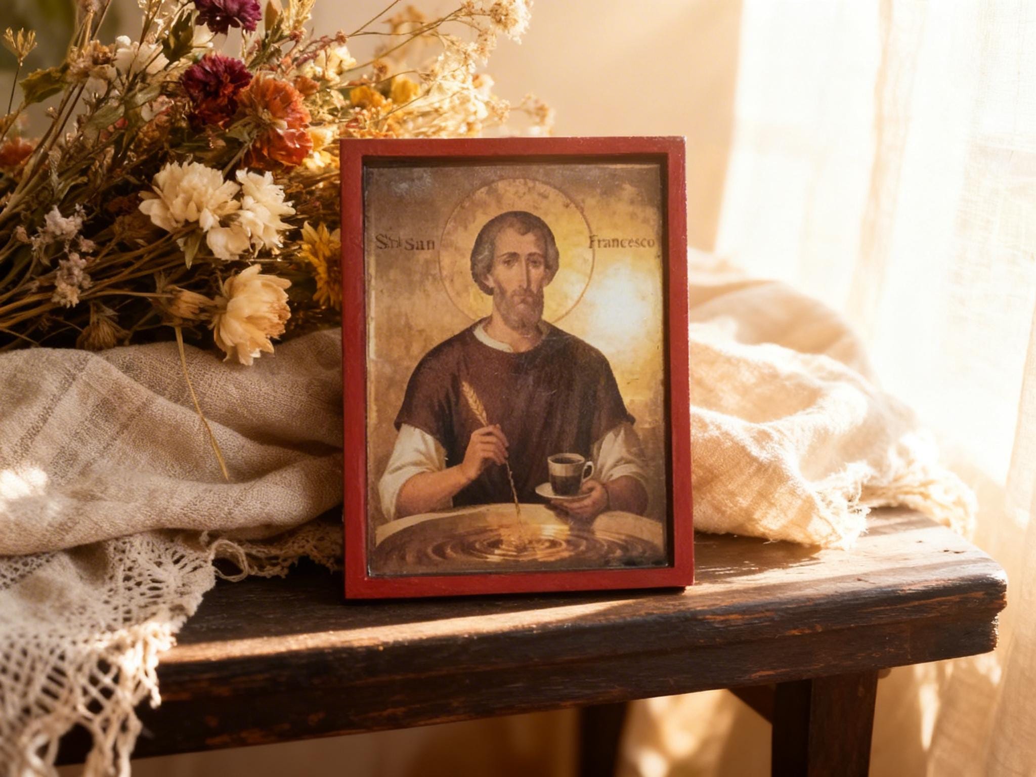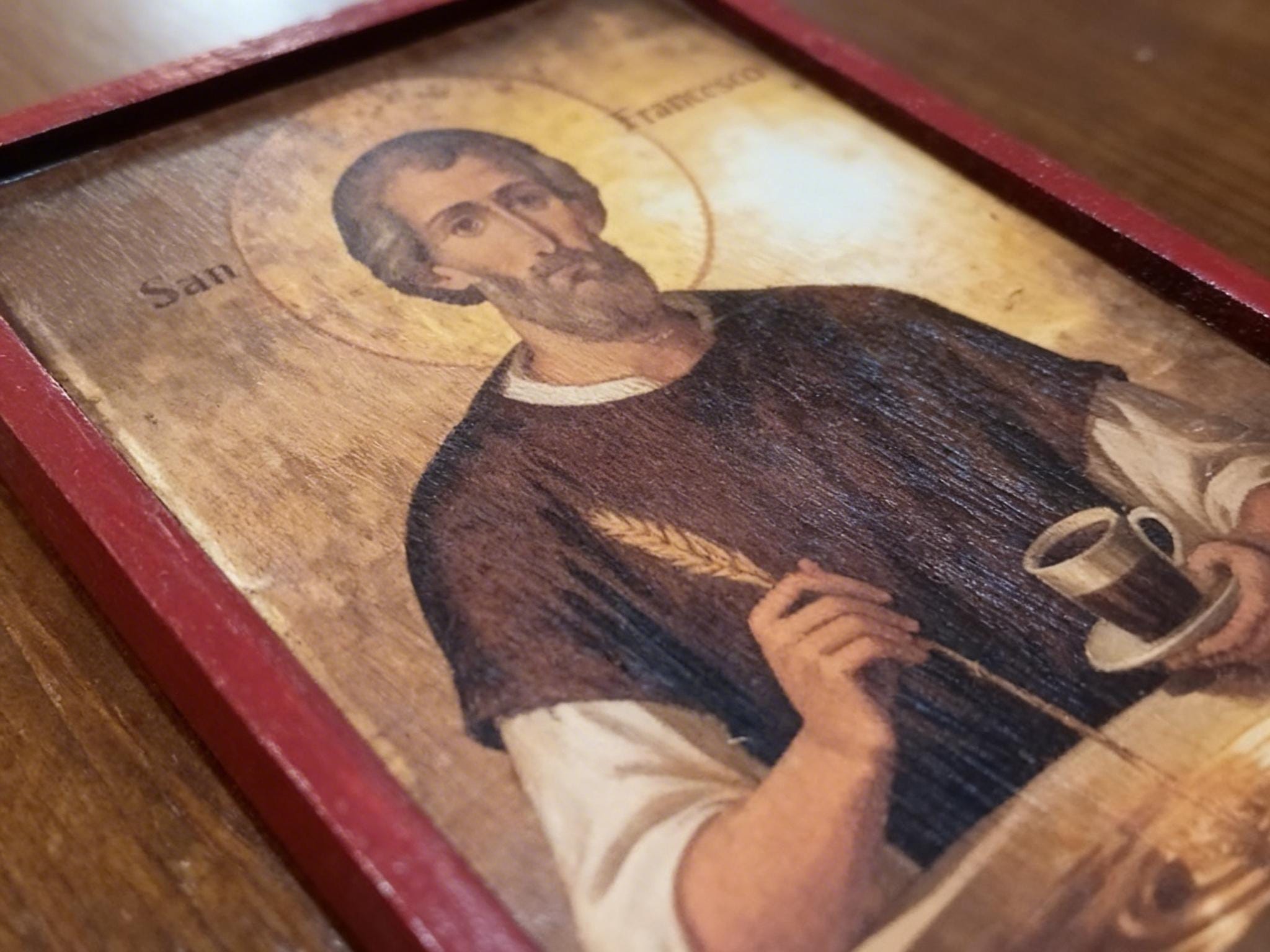 Bring warmth, faith, and a touch of everyday ritual into your space with this unique handmade wooden icon of Saint Francis.