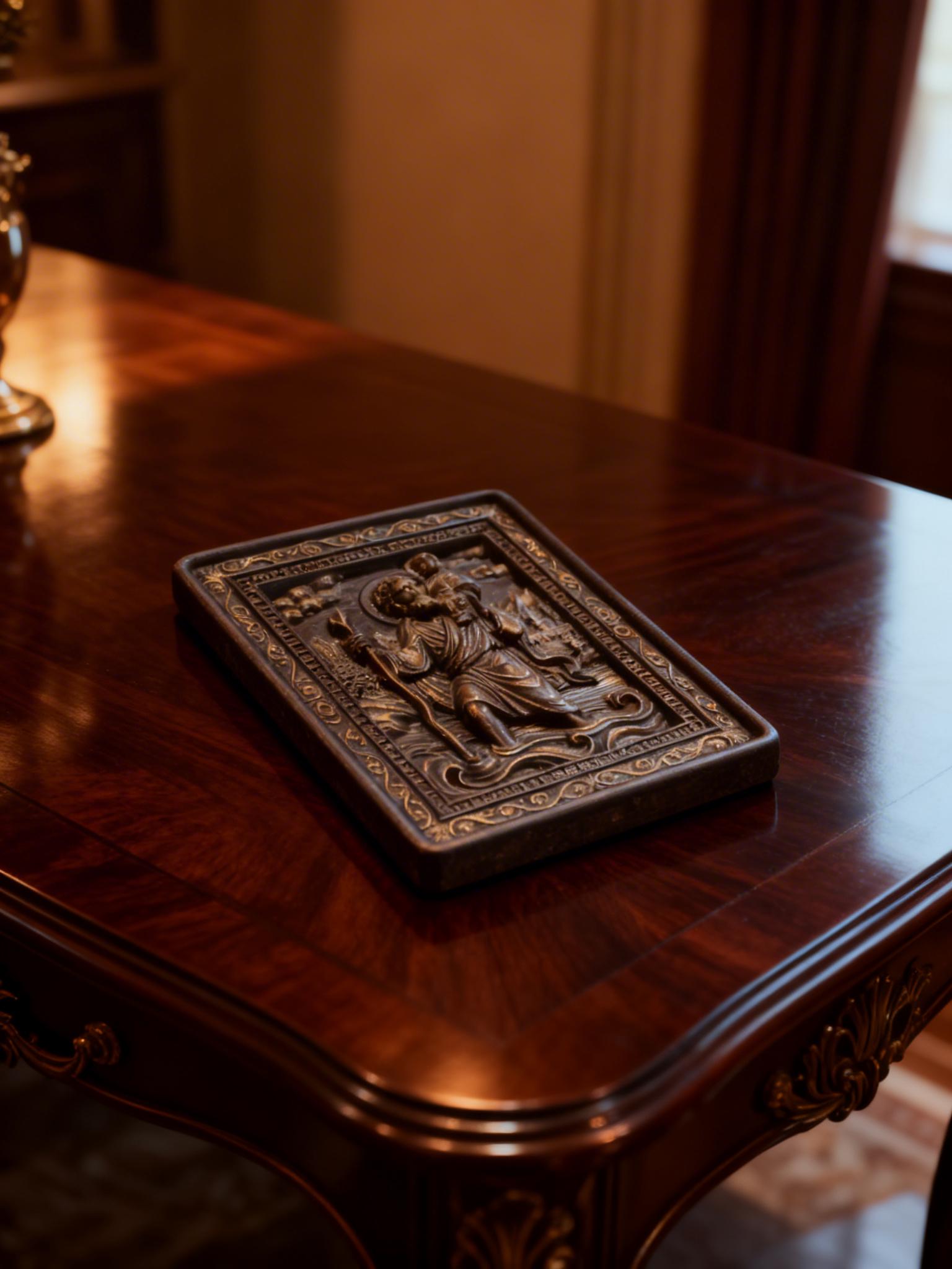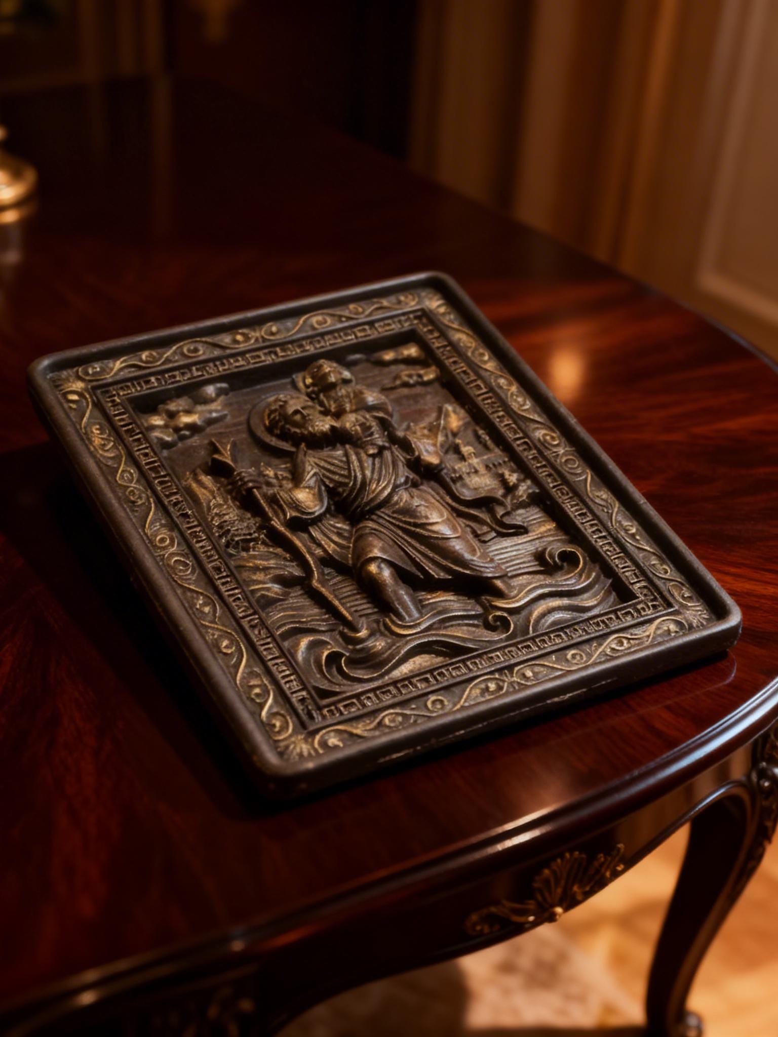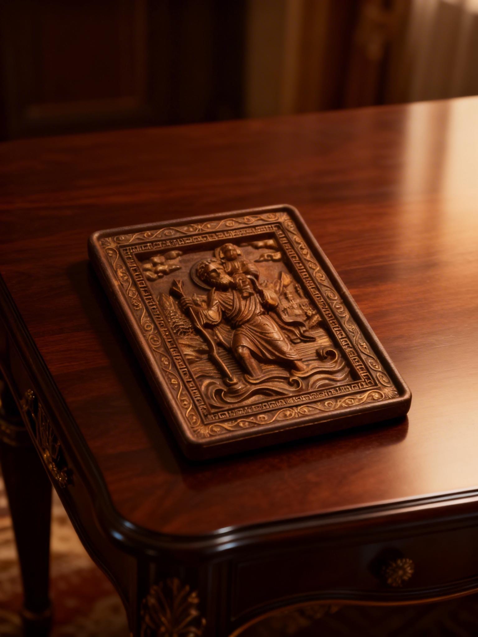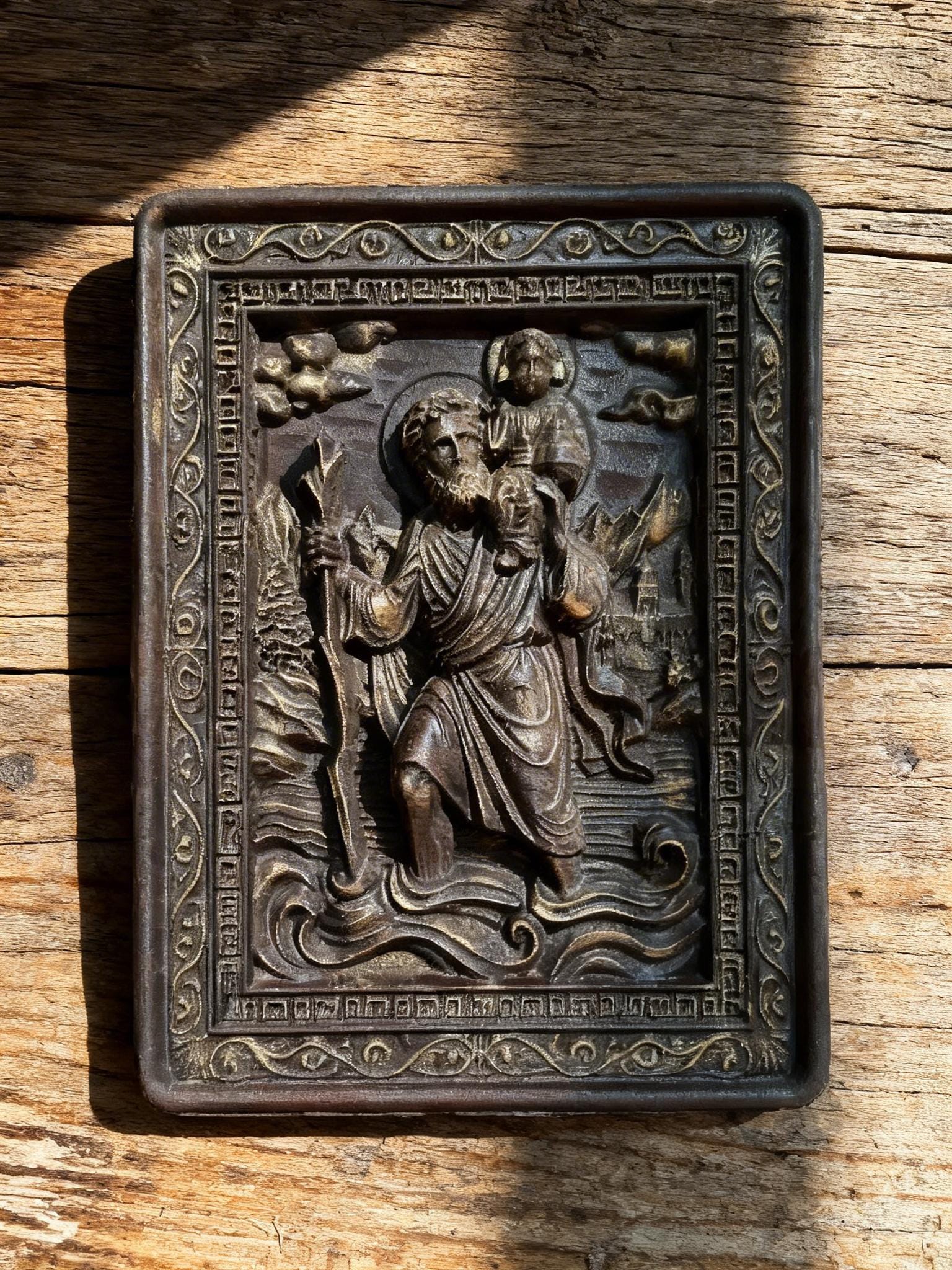Bring spiritual protection and timeless craftsmanship into your space with this handmade wooden icon of Saint Christopher the patron saint of travelers.