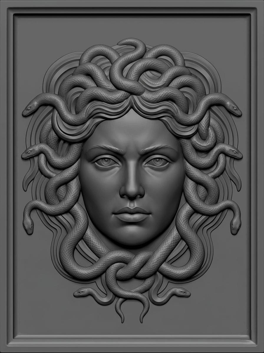 Bring the power of Greek mythology into your creations with this striking Medusa 3D relief design.