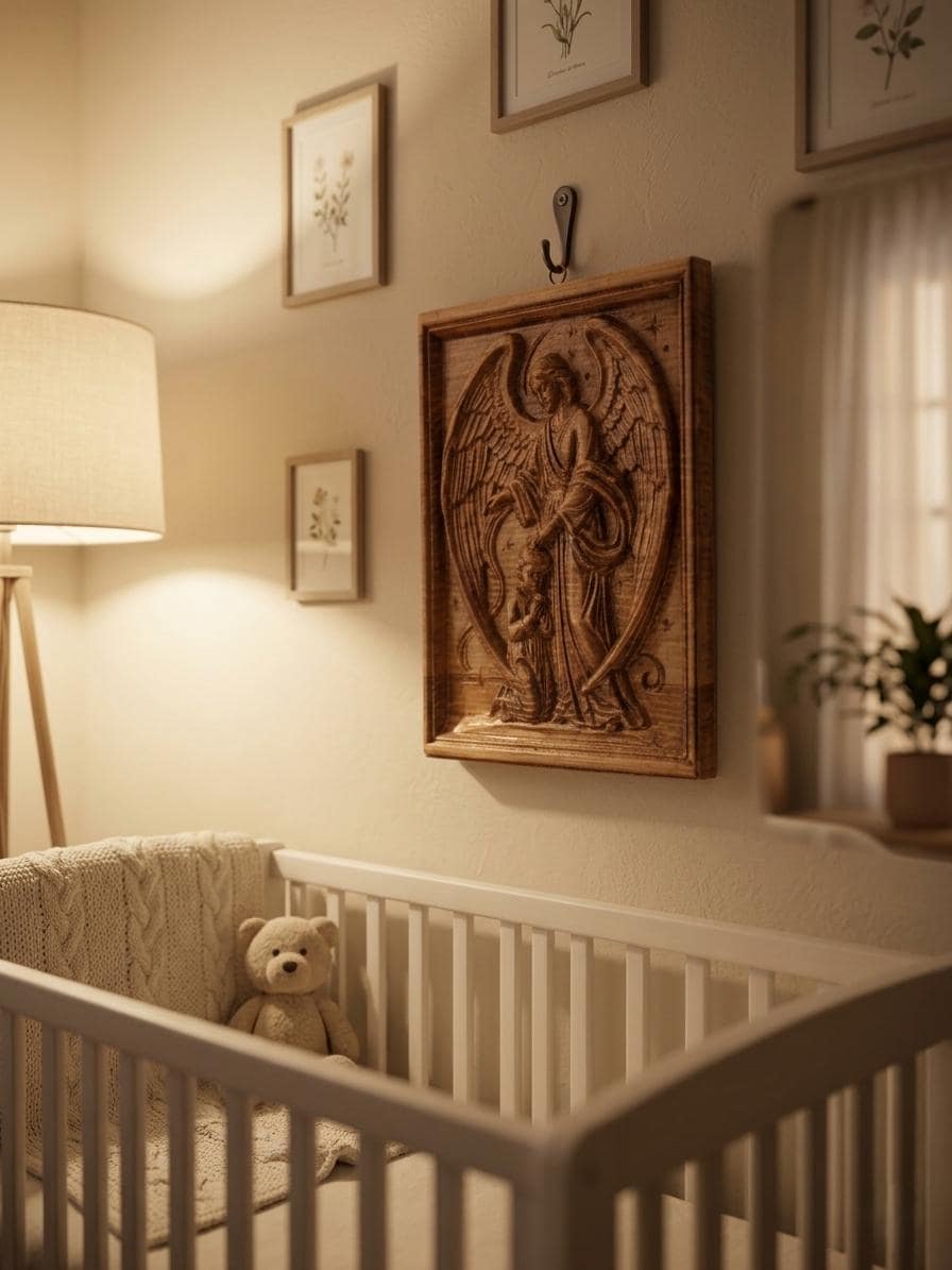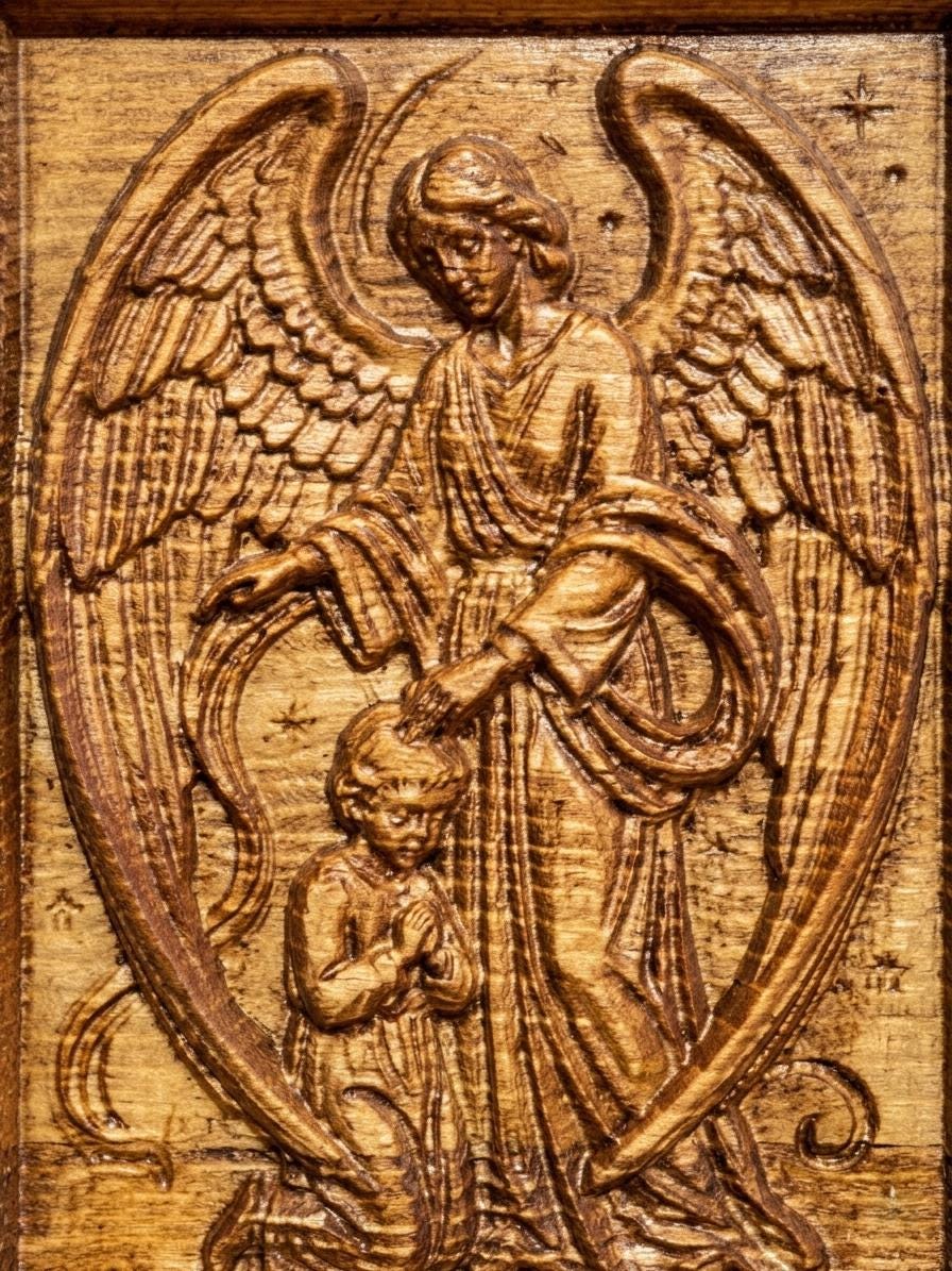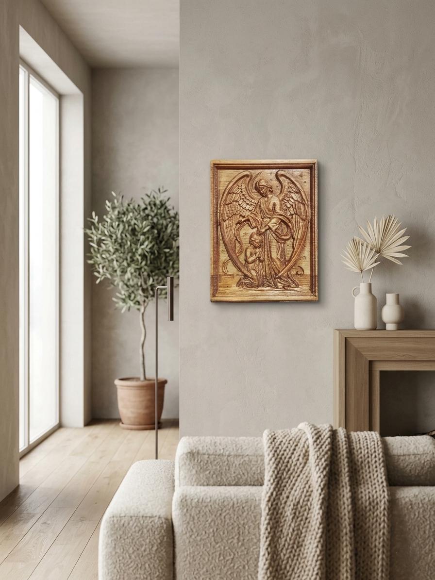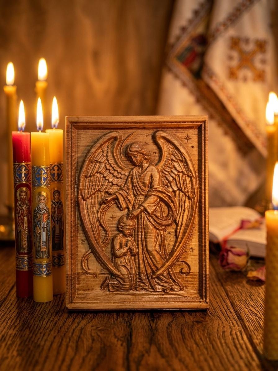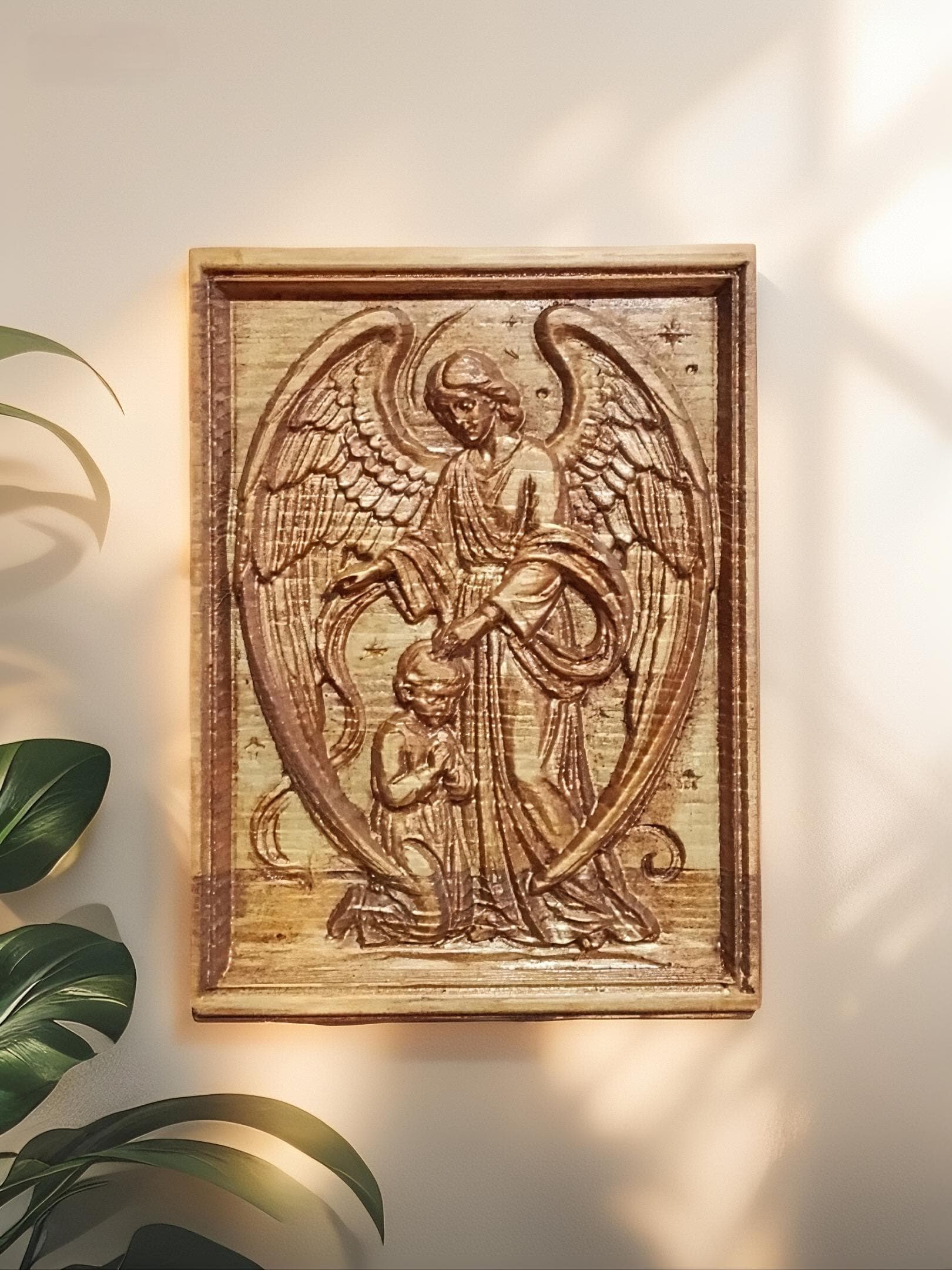 The Guardian Angel symbolizes divine protection, guidance, and unconditional love. It represents a spiritual presence that watches over us, offering safety, faith, and comfort throughout life.